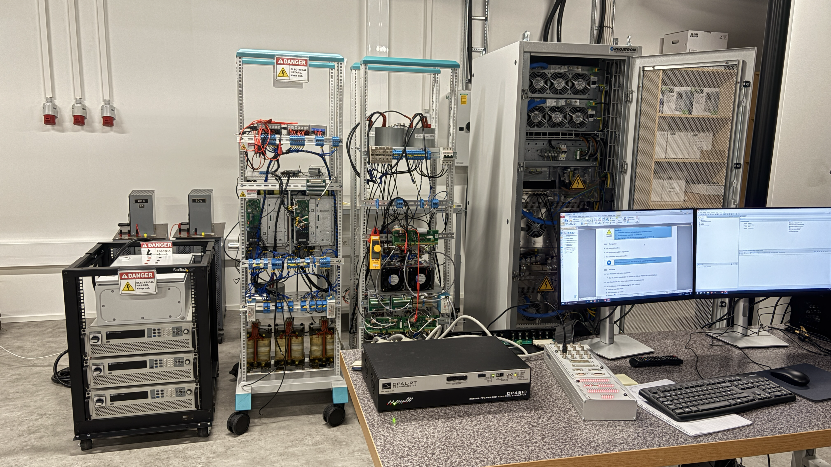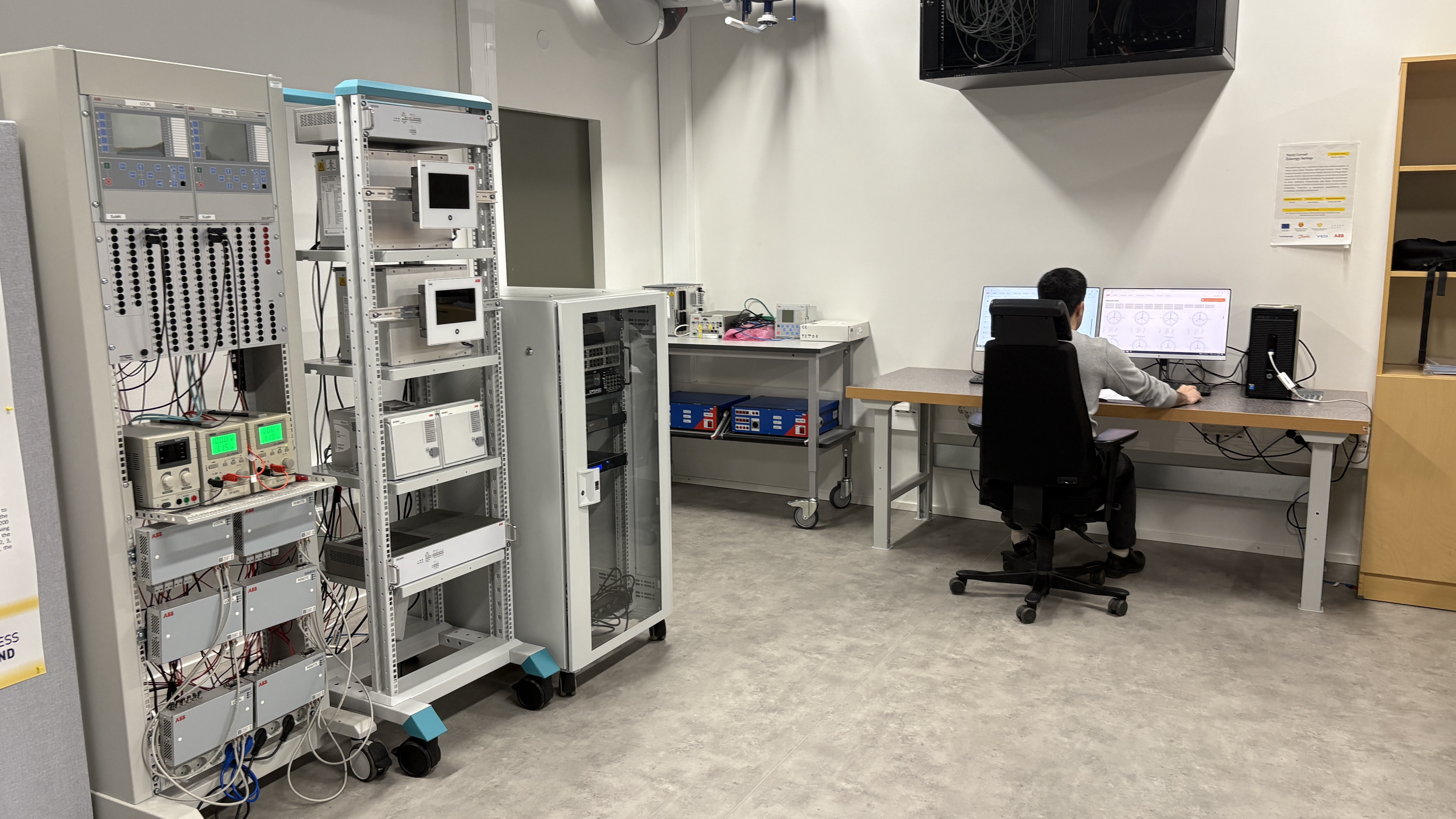 Worth highlighting is the FREESI-lab (Future Reliable Electricity & Energy System Integration laboratory), a cutting-edge facility dedicated to advancing smart and flexible energy systems. The lab features a Protection, Automation, and Communication (PAC) laboratory for testing and training IEC 61850-based protection systems, and an OPAL-RT OP5600 based real-time simulator environment, which supports controller hardware-in-the-loop (CHIL) simulations of Smart Grids. We have also a cyber-physical co-simulation environment based on OPAL-RT’s HYPERSIM & SCALABLE’s EXata CPS enabling the parallel simulation of power systems and communication networks. The recent additions to the lab include power converters and programmable bidirectional AC power source (grid emulator) enabling power hardware-in-the-loop (PHIL) studies of power electronics based renewable energy resources and microgrids. FREESI-lab is a part of the Vaasa Energy Business Innovation Centre (VEBIC) research platform at the University of Vaasa.